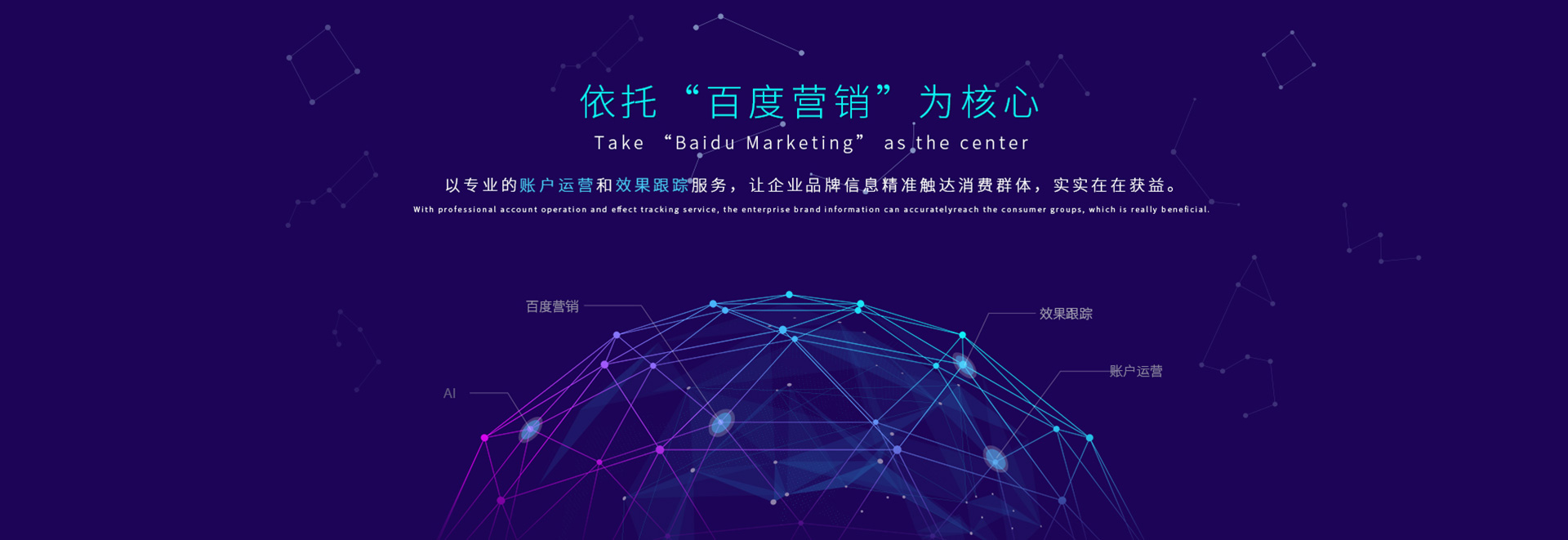 以百度營銷業(yè)務為核心,為本地商家提供網絡營銷及網站建設服務